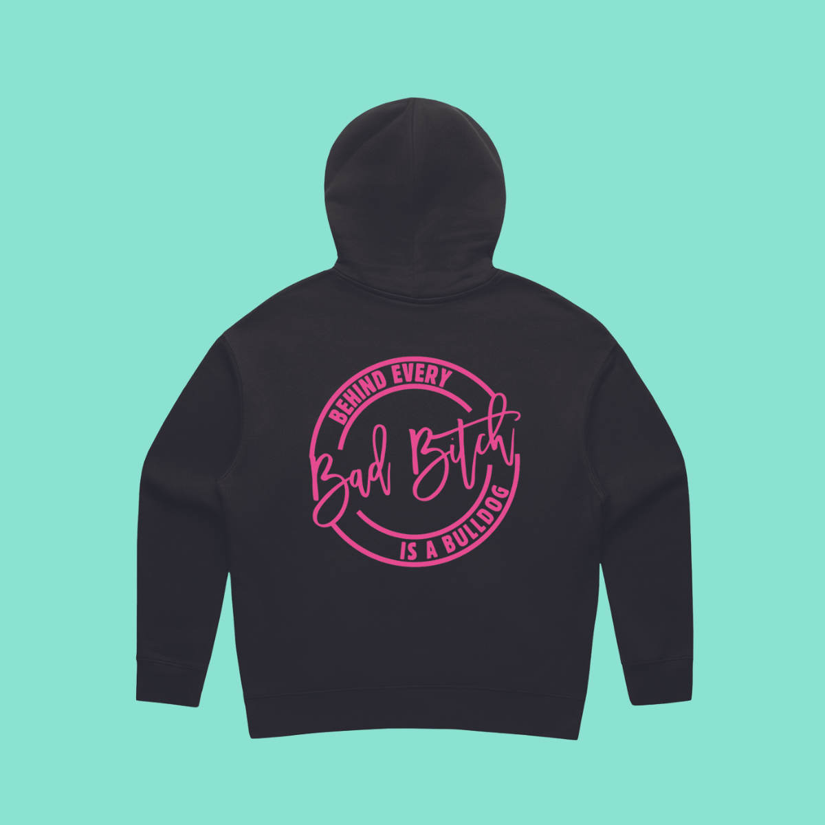 Unleash your inner bad b!tch in this hoodie made for dog moms. The 'Behind Every Bad B!tch' range celebrates fierce mamas, complete with a comfortable fit for all-day dog walks. Cause no one messes with a bad b!tch and her pup!