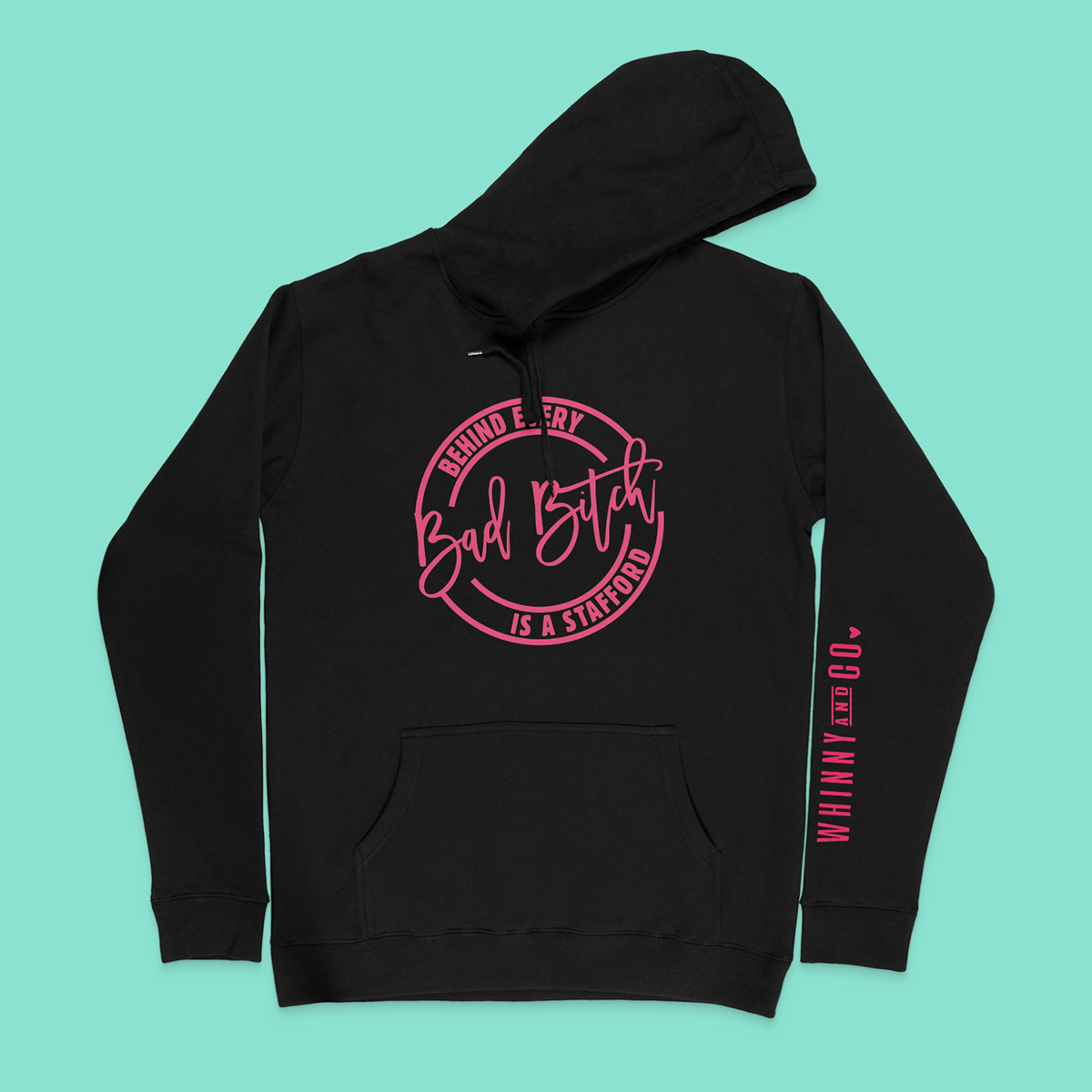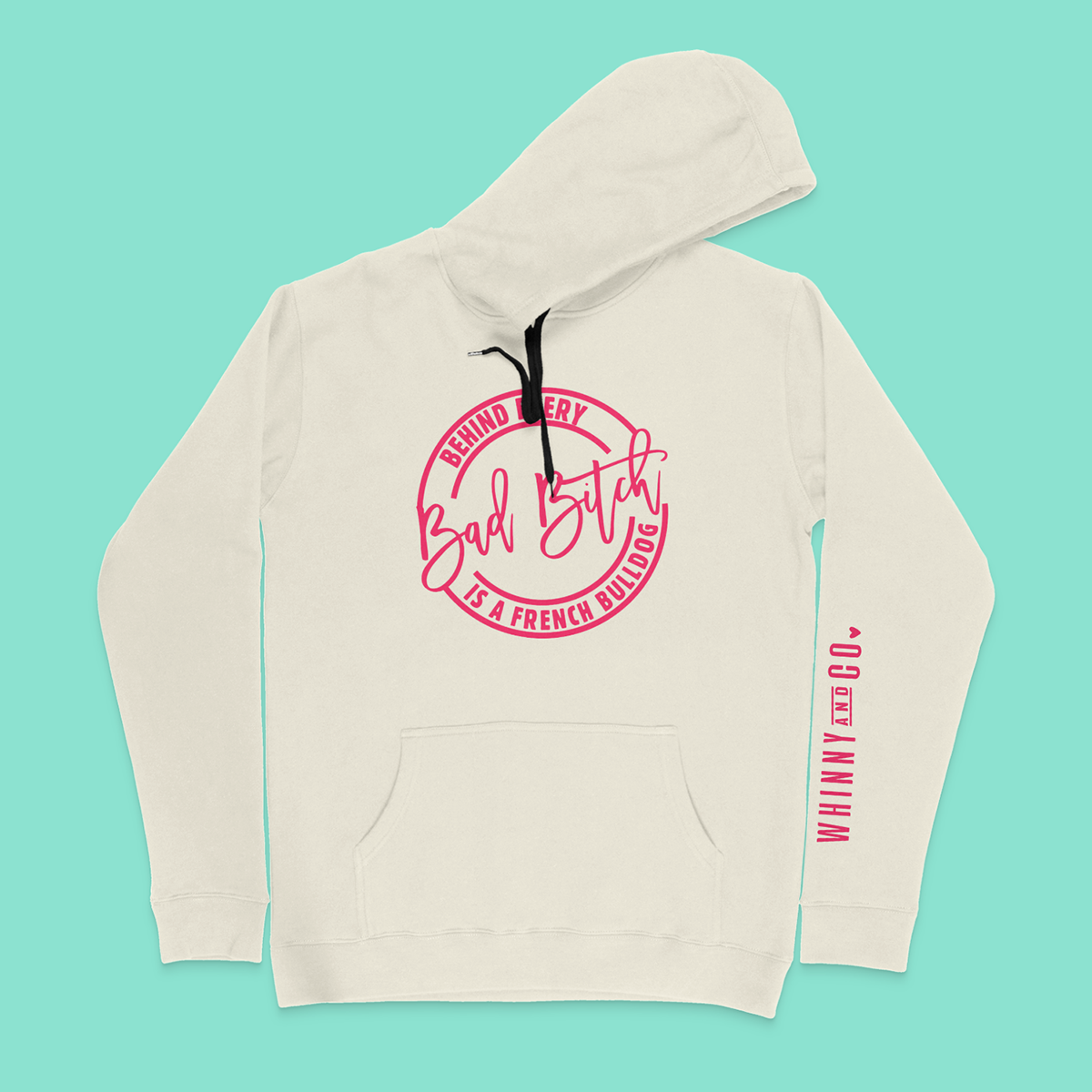 Unleash your inner bad b!tch in this hoodie made for dog moms. The 'Behind Every Bad B!tch' range celebrates fierce mamas, complete with a comfortable fit for all-day dog walks. Cause no one messes with a bad b!tch and her pup!