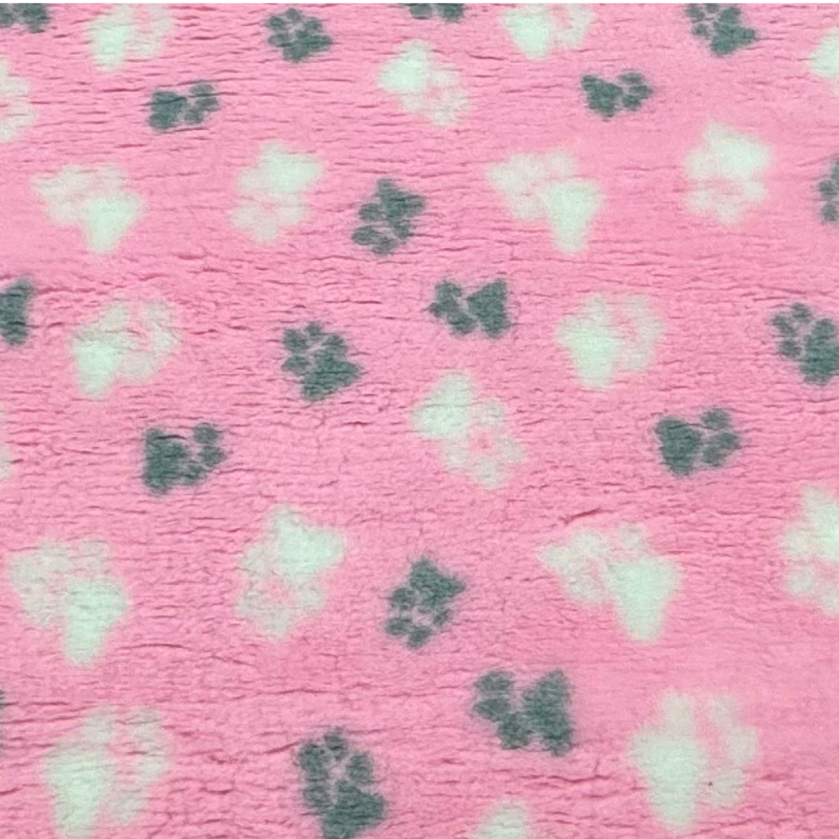 Dry Bed - Non Slip - Pink with Grey & White Paws (Washable Vet Bed)