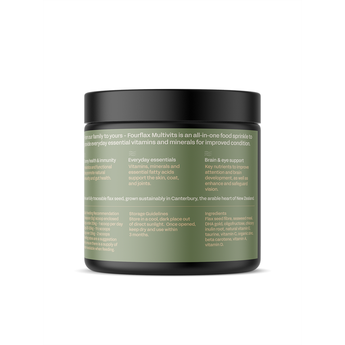 From our family to yours – Fourflax Multivits is an all-in-one food sprinkle to provide everyday essential vitamins and minerals for improved condition.