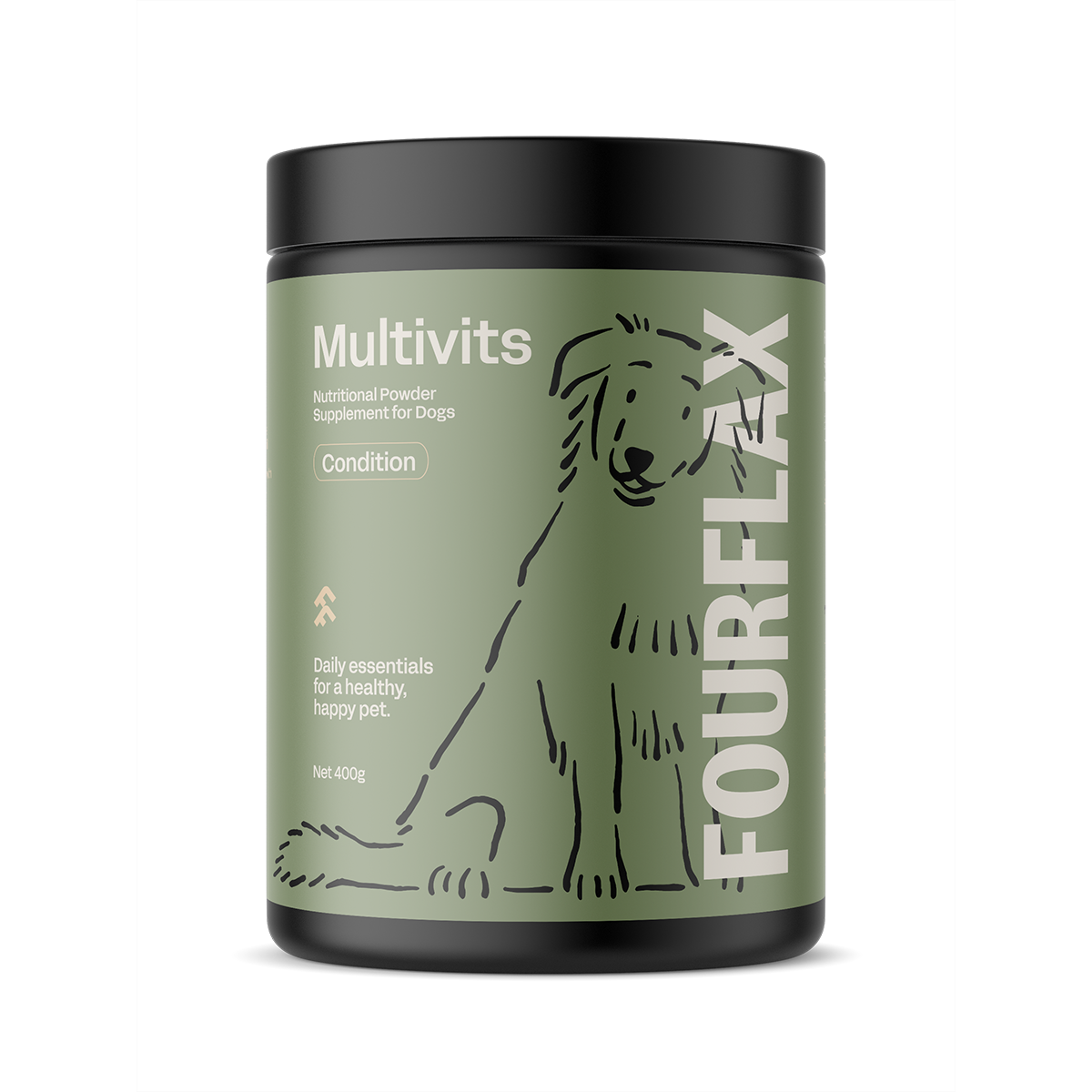 Fourflax Multivits is a powerful blend of everyday essential vitamins, minerals and essential fatty acids support the skin, coat, and joints. Packed full of prebiotics and functional fibre for a healthy tummy and to build natural immunity. Key nutrients can help to improve attention and brain development, as well as enhance and safeguard vision. Daily essentials for a happy, healthy dog!