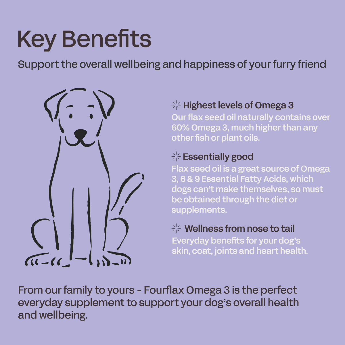 From our family to yours – Fourflax Omega 3 is the perfect everyday supplement to support your dog’s overall health & wellbeing