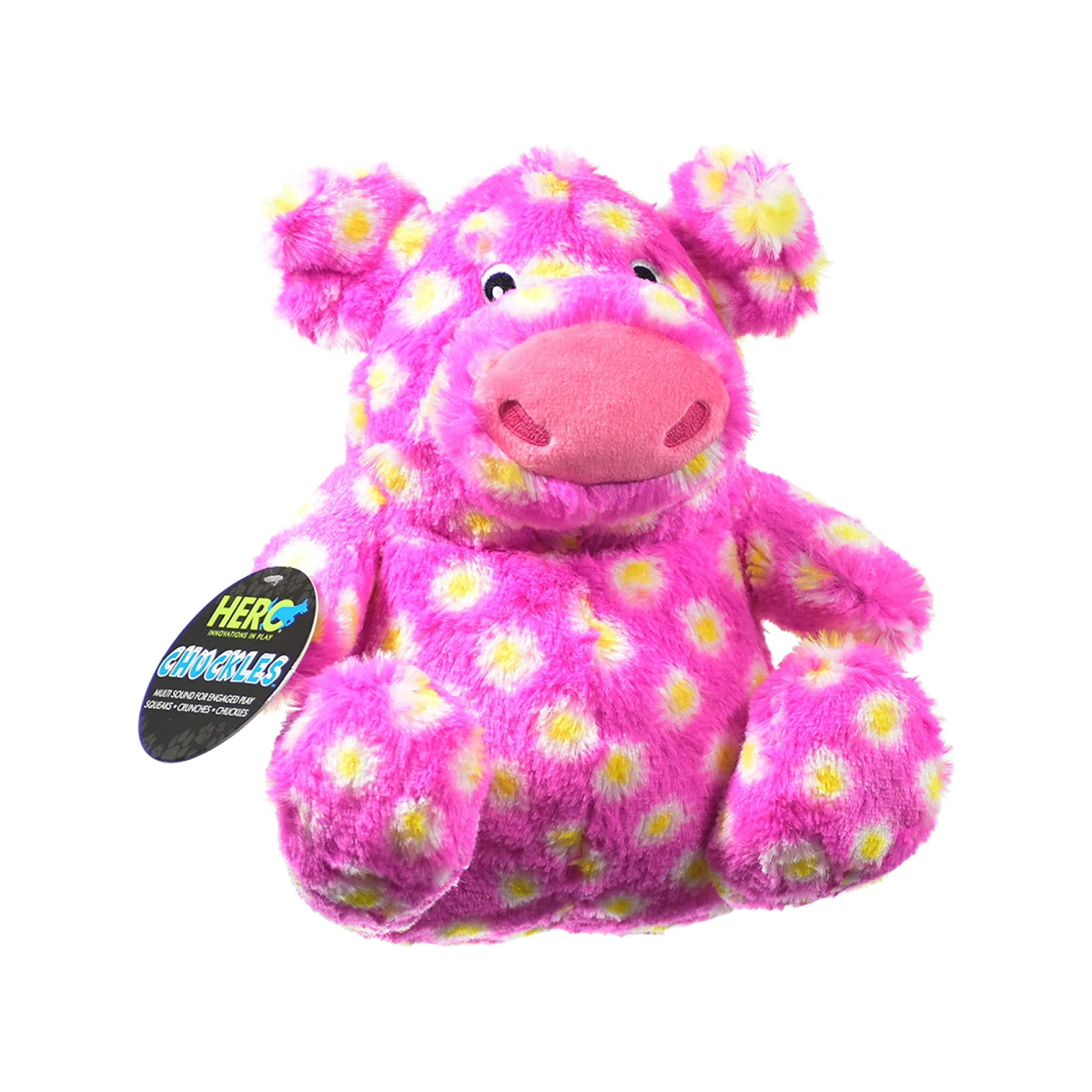 Hero Chuckles Pig is a new fun and funky plush animal that will give your dog a long-lasting friend with dual-layered reinforced lining and durable stitching. It’s soft, cosy, and features our patented Chatterbox, the innovative 3-in-1 squeaker in the centre. The squeaker will crunch, squeak, and even chuckle! The multiple sounds will engage your dog in active play for hours on end!