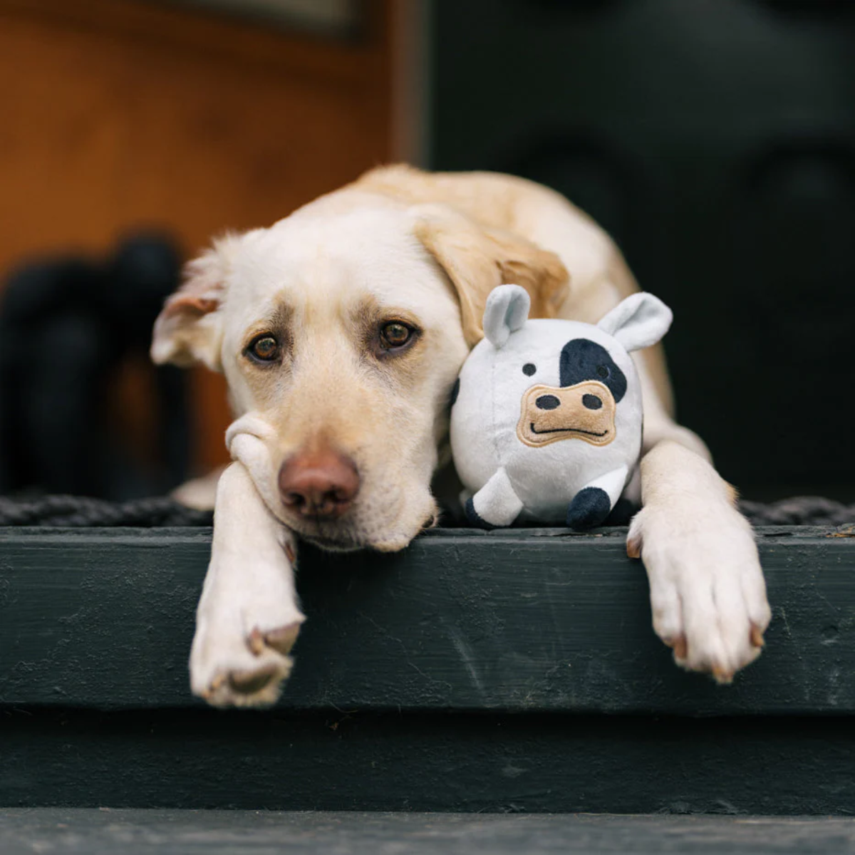 Moo-ve over boring toys— P.L.A.Y.’s Barnyard Buddies Cole the Cow toy is here to make playtime extra exciting! With a plush exterior for cuddles, a spiky squeaker ball is hidden inside so the fun keeps going even when playtime gets a little ‘ruff’! This barnyard buddy is the best of both worlds, so let’s have an udderly good time!