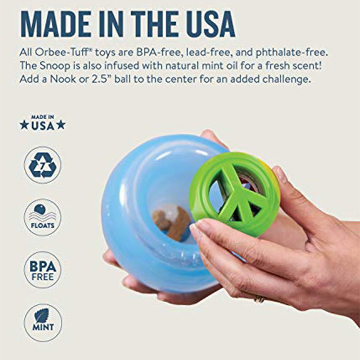 For extra credit, insert in the Large snoop any 2.5" Orbee-Tuff® toy (NOOK, Orbee Ball and also stuffed with treats) for a double puzzle.