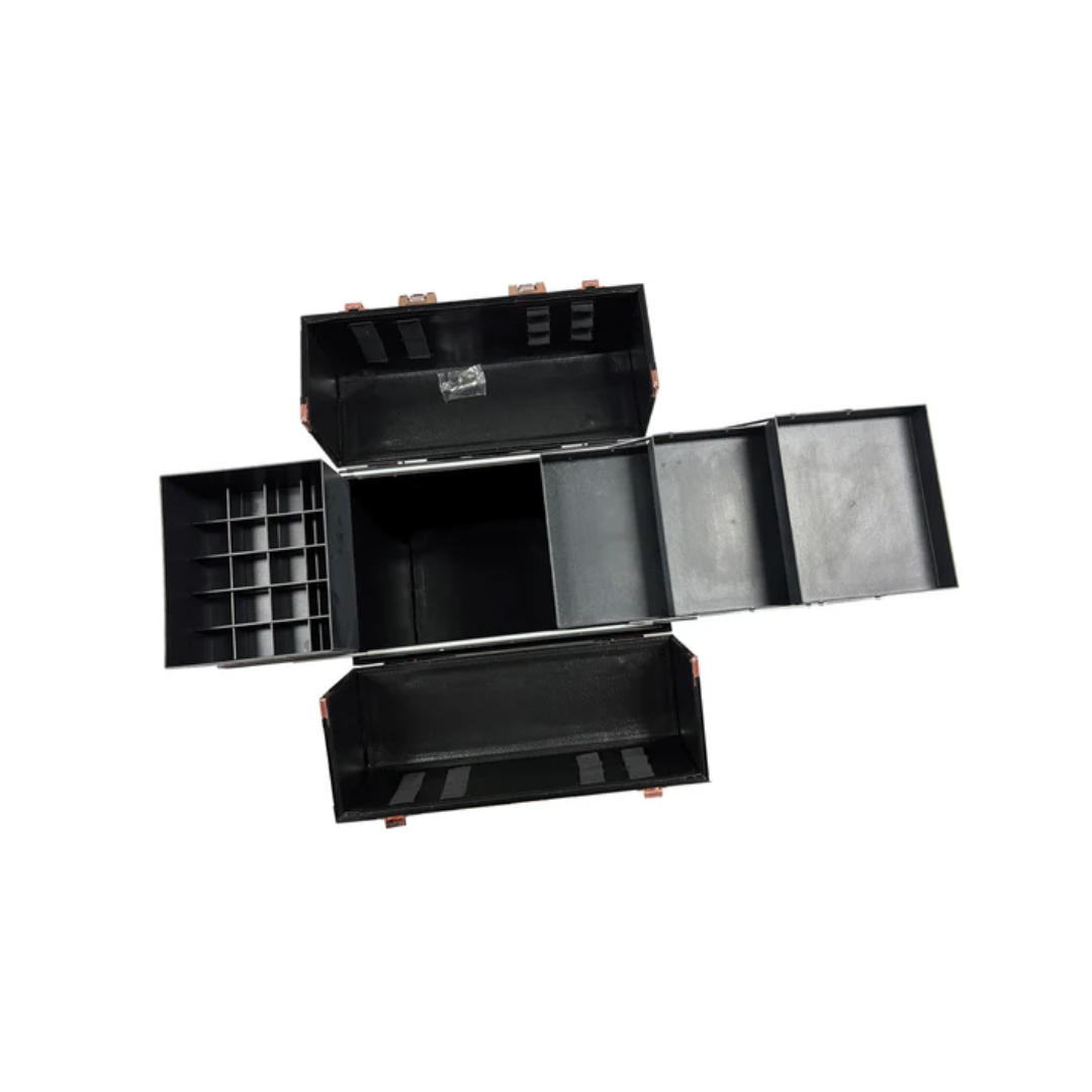 Stylish and lightweight with a sleek design, this Professional Grooming Box will stand out amongst the crowd with its sparkling black finish adorned with Rose Gold trimmings.