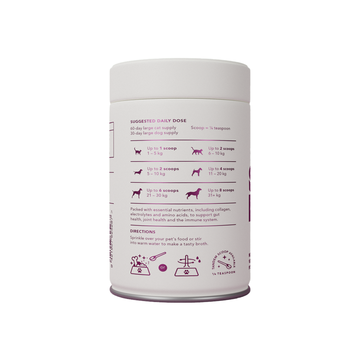 Recognising that many cats and dogs have sensitivities to beef, we have specifically sourced venison for this bone broth, providing an alternative that supports their health without triggering common allergies.