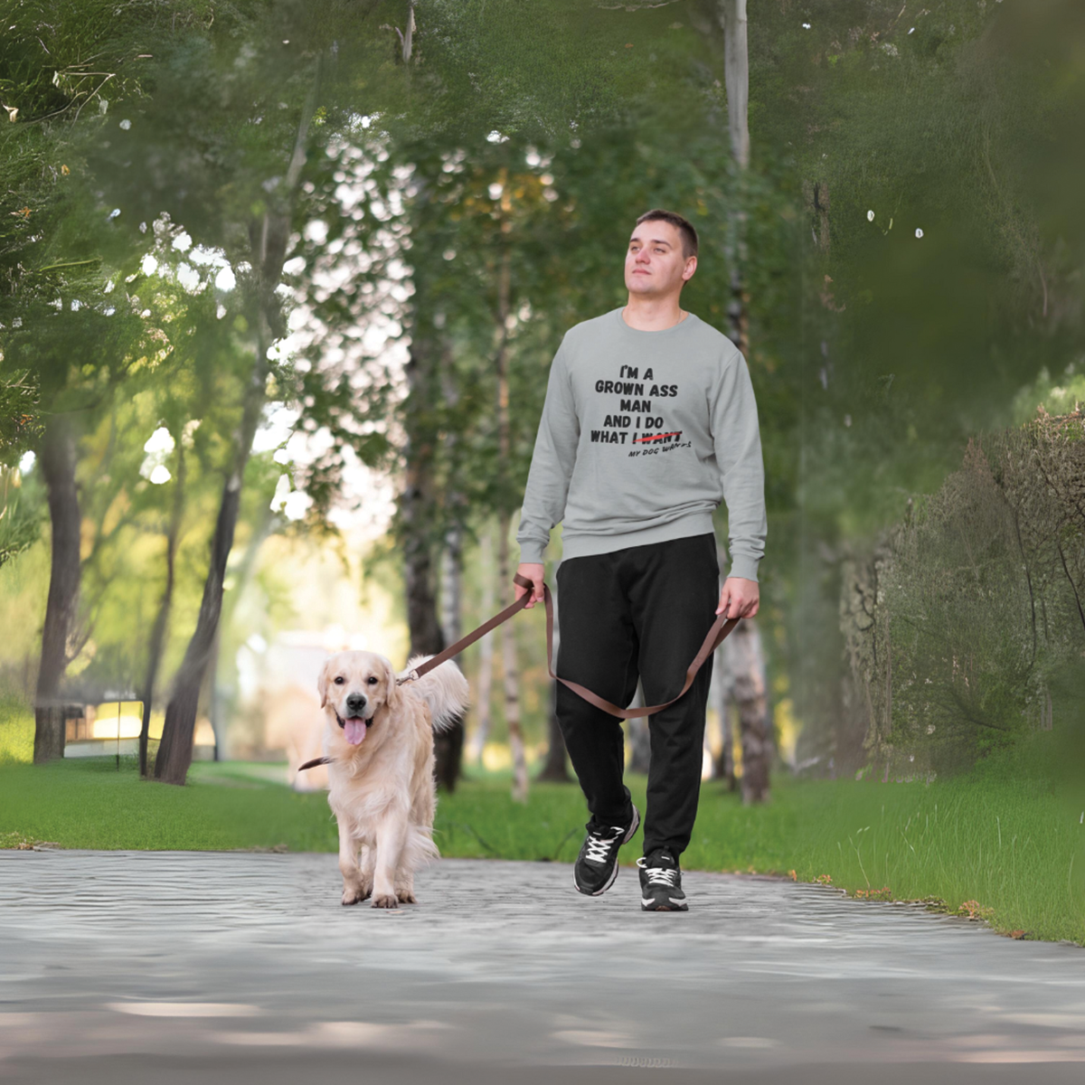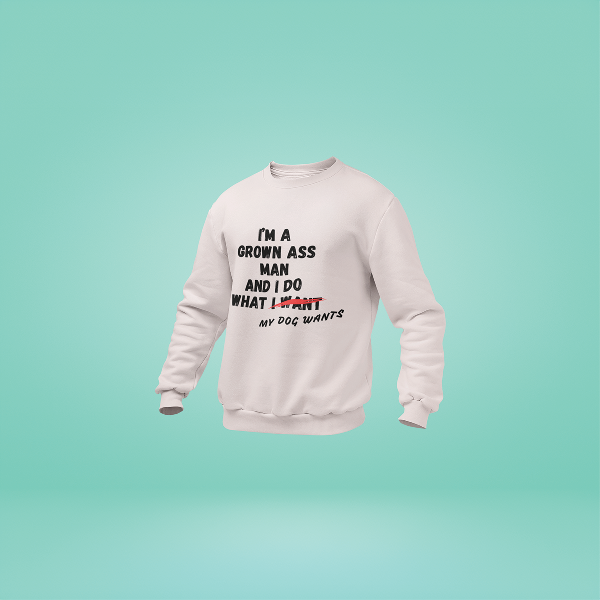 The Grown Ass Man Crew is a high-quality crew neck jumper for the man who knows what his dog wants (and isn't afraid to admit it). Embrace your inner dog dad and stay cozy in this playful and quirky sweater. Perfect for any occasion, from walks in the park to lazy days at home.