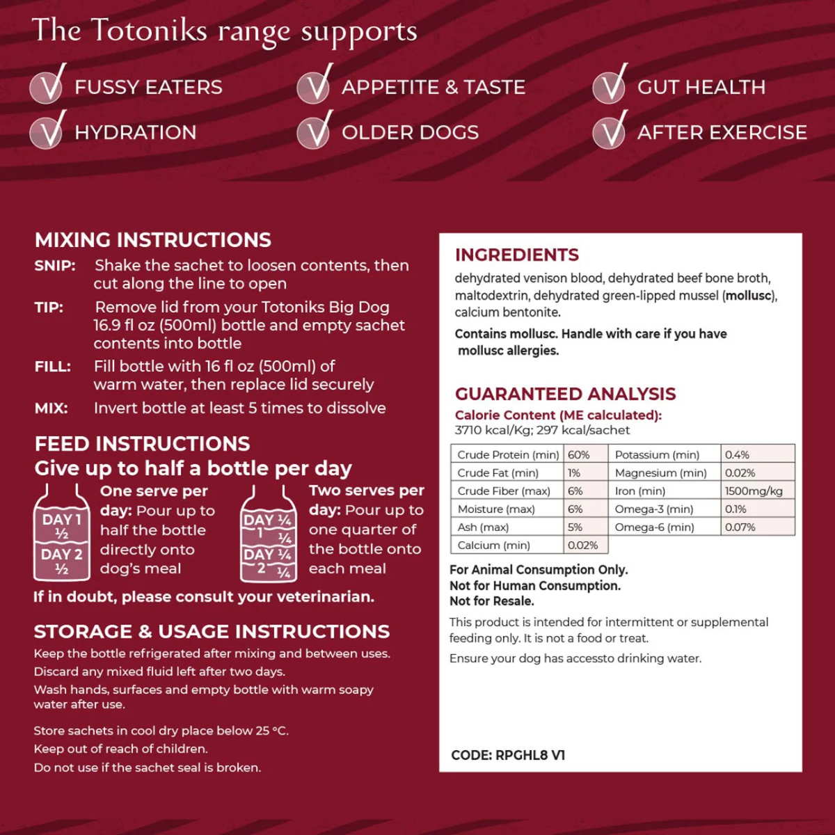 Totoniks - Gut Health & Hydration - Large Dog 15kgs