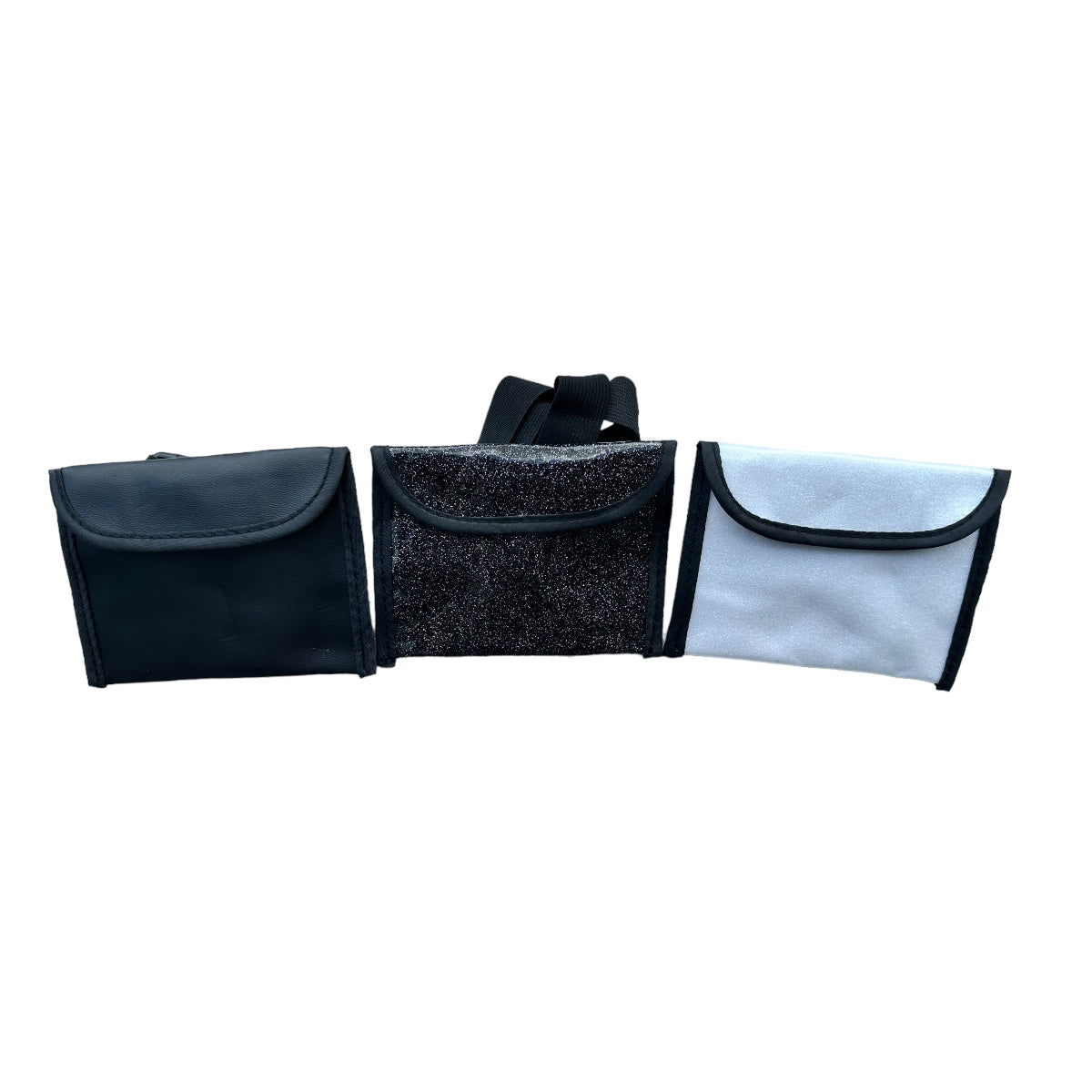 - Adjustable strap stitched onto pouch with snap clip to secure around waist.