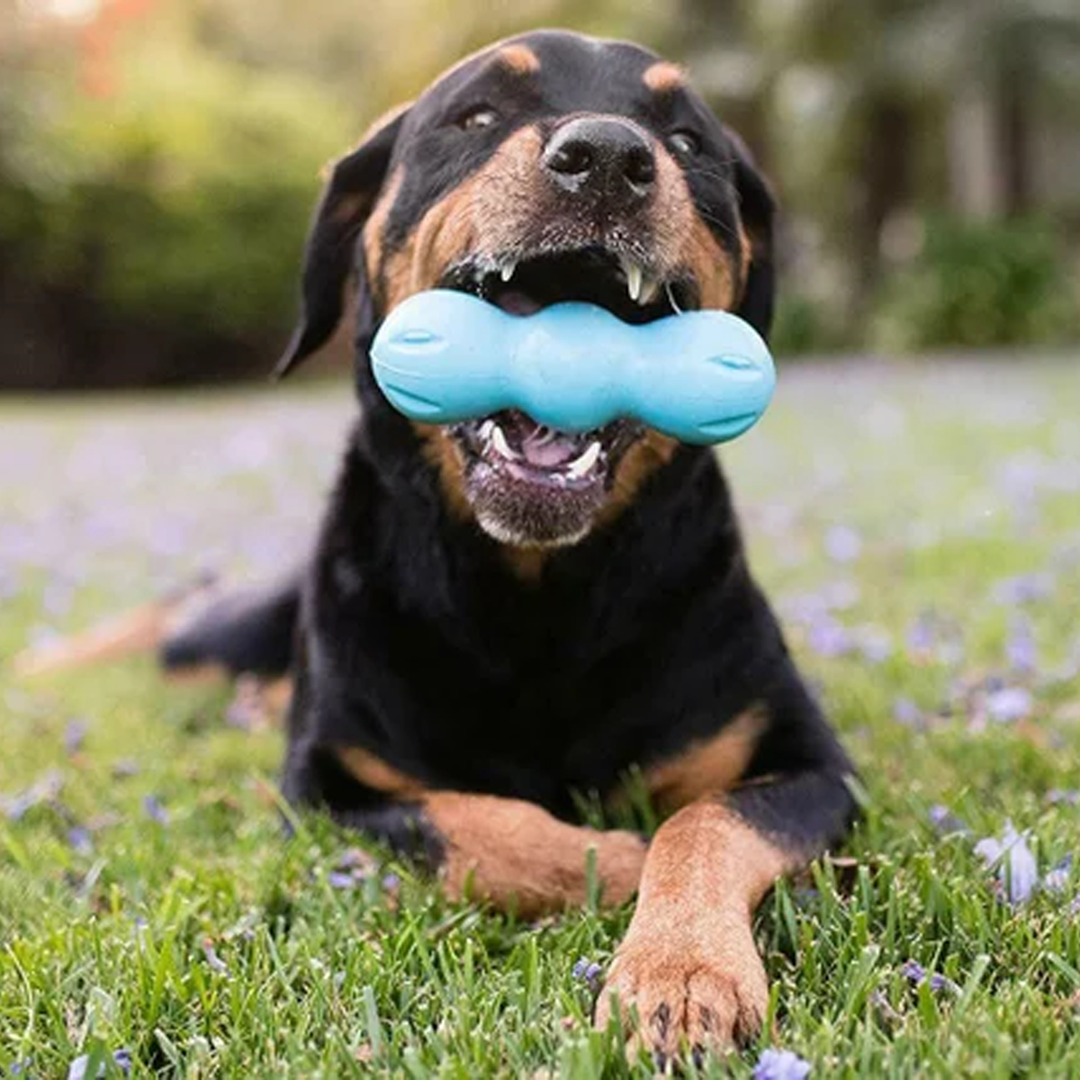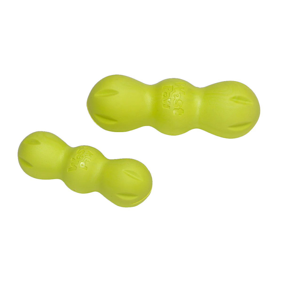 Built for tough chewers, West Paw’s newest and most-durable dog toy is so strong some say it has muscles. With three chew lobes, this extra-durable toy also rocks and rolls to keep dogs engaged. Tested for toughness, Rumpus bounces on land and floats in water making it great for interactive play inside or outside the house. Made from the same extremely durable material as West Paw’s other Zogoflex chew toys, Rumpus is meant for dogs who have a need to gnaw.